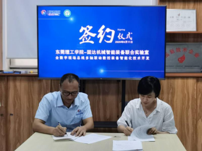 9月11日,sunbet官网与东莞市固达机械制造有限公司签约共建东莞理工—固达机械智能装备工程技术研发中心,sunbet官网常务副院长周梓荣和固达机械制造有限公司副总经理凌益民分别代表双方签约。根据协议,该公司将在三年内投入1500万元用于中心的建设和运行,开展与公司主导业务相关的智能制造装备核心关键技术研发,并实现金切专用数控装备国产替代。随后,sunbet官网机器人与智能装备创新中心尹玲博士与公司签署了第一份研发项目合同《全数字现场总线多轴联动数控装备智能化技术研发》,项目经费350万元。东莞理工学院常平学院负责人李培经、sunbet官网副院长魏亚东及东莞市固达机械制造有限公司有关人员出席签约仪式。