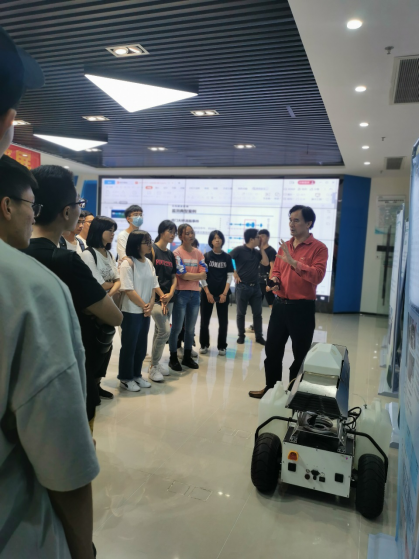 最后一站是AI智能场景实验室,通过视频演示和展示海报向参观师生展示了新一代5G应用机器人在政务,救灾,生活,防疫等场景的投入使用。周梓荣院长主讲为参观同学介绍5G通信技术的新发展新应用场景,科普展览的最后,周院长鼓励参观学生要志存高远,增长知识,锤炼意志,不忘初心,牢记使命,做对祖国建设有用的人才。