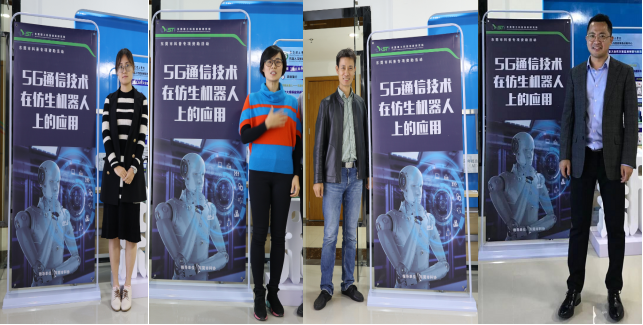 参观人员在尹玲副教授、宋加雷博士、武静博士的介绍下了解了近年来的智能机器人产品及科技成果,并展示了5G通信技术在仿生机器人上的应用。据介绍,在基于5G网络的环境,将机器人与操作者连接,操作者通过5G端到端系统,将身上传感器采集的信息通过5G网络实时传输给仿生机器人,实现操作者对机器人毫秒级的实时控制,达到人机协同效果。