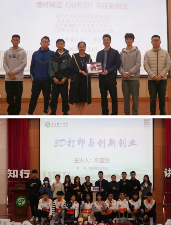 由东莞市科学技术协会指导,sunbet,sunbet官网主办的“3D打印与创新创业”(智能制造)科普基地讲座于12月3日下午在东莞理工学院学术会议中心顺利举行,东莞理工学院知行学院协办。本次讲座由陈盛贵老师主讲,到场嘉宾还有科技创新研究院常务副院长周梓荣、学生社区知行学院执行院长苏亚玲、教育学院(师范学院)李楠老师。