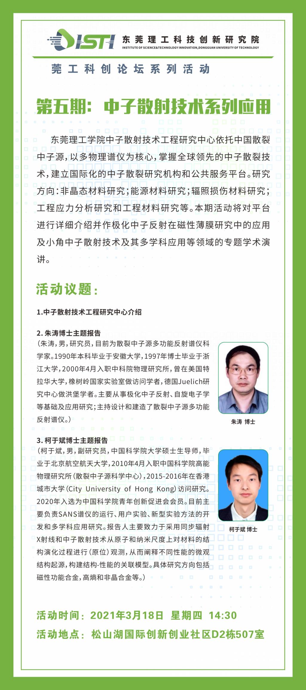 学术活动预告|东莞理工科技创新研究院“莞工科创论坛”系列活动第五期