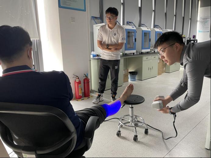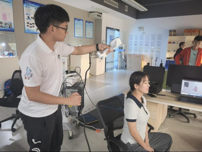 2021年3月17日下午,河北经贸大学体育学院张卫老师一行抵达科技创新研究院进行交流。sunbet官网武文钦老师使用三维扫描仪采集实验相关数据。