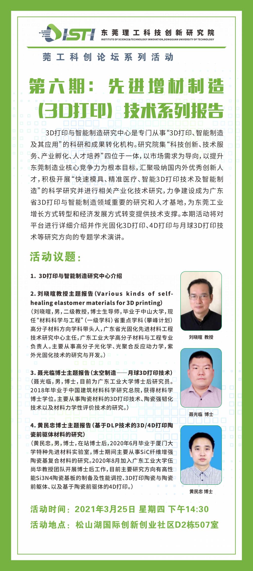 学术活动预告|东莞理工科技创新研究院“莞工科创论坛”系列活动第六期