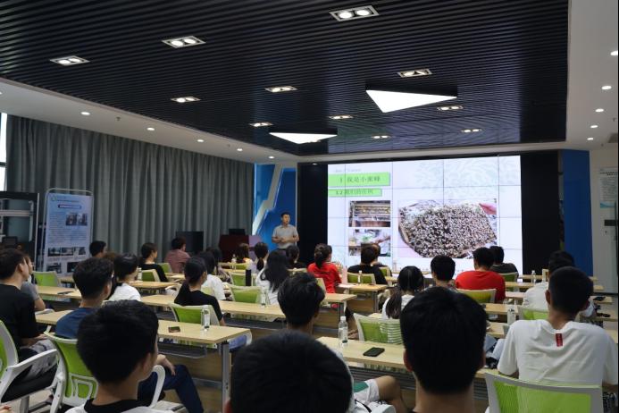 本期活动对“食品营养健康工程与智能化加工研究中心”平台进行详细介绍,三位博士就蜂产品的高值化功能利用、抗性淀粉种类与GI值、细菌纤维的生物合成等研究方向做了生动活泼的专题学术演讲,活动现场气氛热烈,不时发出阵阵笑声,观众积极参与交流。
