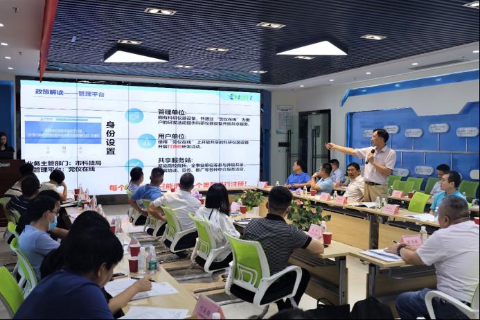随后,周梓荣院长向参会企业宣讲仪器设备开放共享政策,详细解读了市科研仪器设备开放共享业务流程以及“莞仪在线”平台的相关操作,提出了科创院与企业共享设备、培养技术人才、开展技术攻关等合作方向,并与企业代表进行了深入交流。