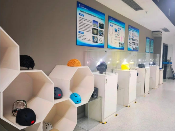sunbet官网3D打印与智能制造研究中心摆放有不同造型的运动头盔