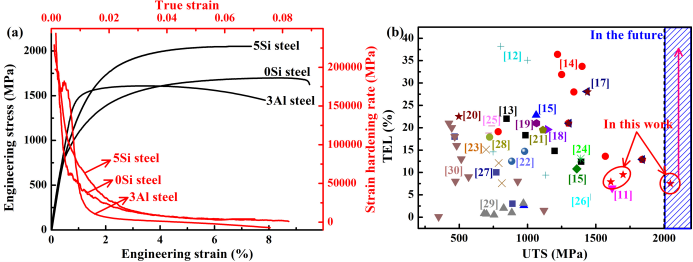 (图. 5Si中锰钢热轧板力学性能及与其它中锰钢热轧板的对比)