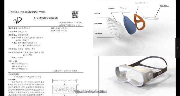 本项目形成的产品具有较高的舒适性和密封安全性,能减轻特殊防护行业工作者由于长时间佩戴防护用品导致脸部产生的压迫感,给予用户更舒适的佩戴感受。特别是对需要长时间佩戴口罩的医疗工作者及相关的工作人员,更需要定制一个匹配他们脸型的口罩支架,以减轻他们由于长时间佩戴口罩导致脸部产生的压迫型损害。目前项目成果已获得广东省机械工业科学技术奖二等奖及广东省机械工程学会科学技术奖二等奖,相关的产品已获得一类医疗器械备案,申请中国发明专利6项(授权2项)、美国发明专利1项、南非发明专利1项,《一种个性化3D打印口罩支架的制备方法》的中国发明专利获第九届澳门国际创新发明展金奖;项目组牵头制定了团体标准并引导推动市场发展,项目形成的成果多次受到新闻媒体报道,取得了良好的社会效益。