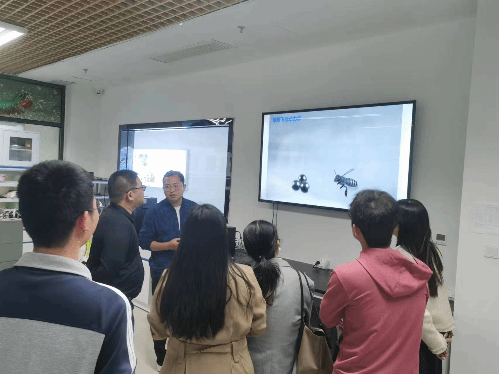 在参观的过程中,宋加雷博士首先向来宾介绍了中心现阶段发展状况及建设,以及中心各实验室的科研工作情况。随后,来宾一行参观了仿生机器人实验室,深入实地了解实验室在科研、科创和科普方面所做工作。
