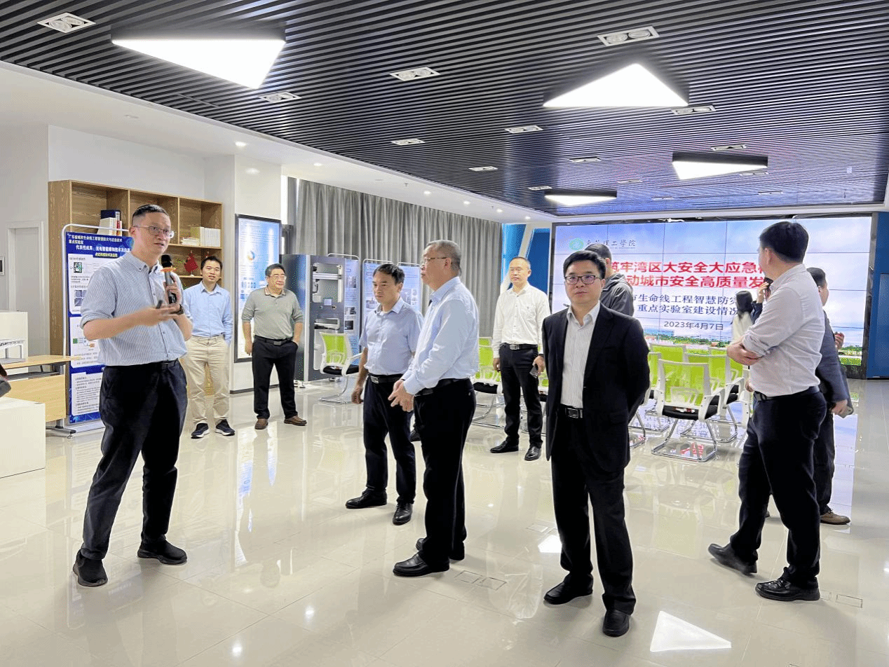来宾一行先后参观了西门子智能制造中心、先进探测器实验室和广东省城市生命线工程智慧防灾与应急技术重点实验室,深入实地了解了科创院各平台科研工作情况。