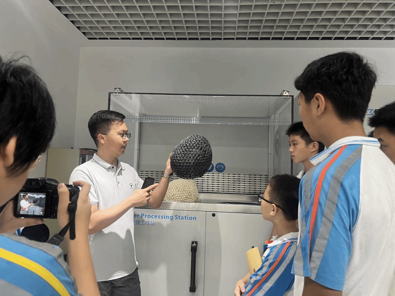 为了加深中学生对科学前沿的了解,开阔学生视野,提高学生综合能力。于2023年6月7日下午,松山湖实验中学一行30多位学生在老师的带领下,兴致勃勃地来到sunbet官网开展科普参观学习。