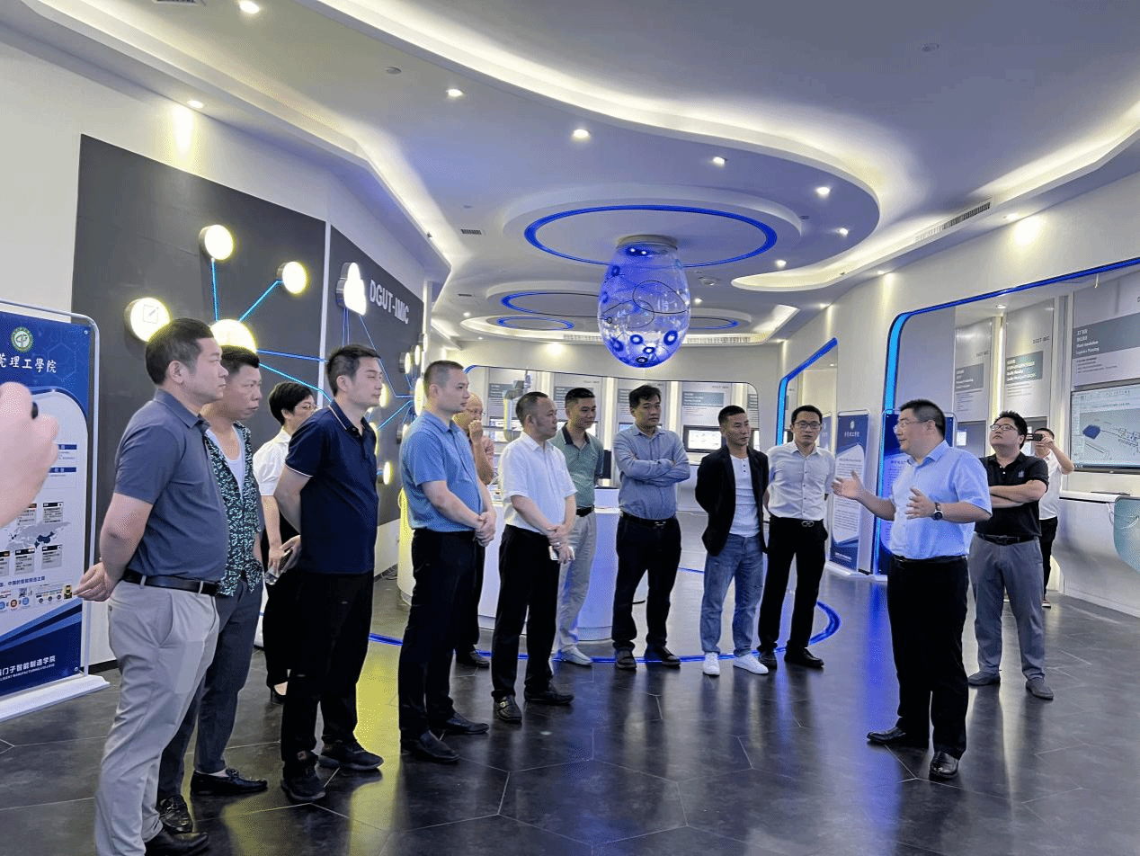 2023年6月16日,雷州商会一行25人莅临sunbet官网参观交流。东莞理工学院科技创新研究院院长夏能礼接待了来宾。