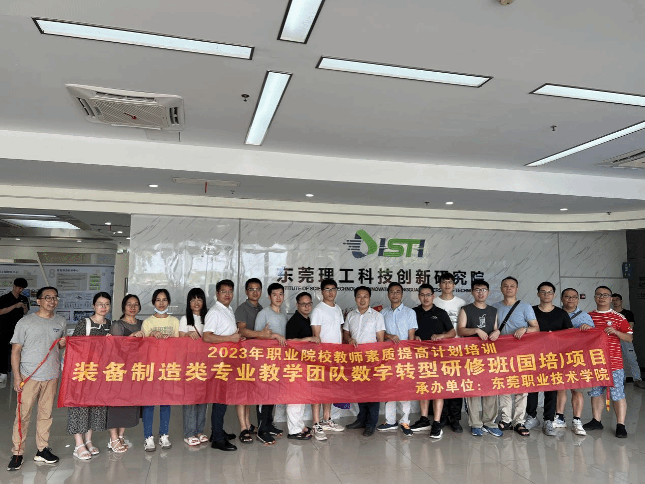 2023年7月14日,东莞职业技术学院承办的装备制造类专业教学团队数字化转型研修班学员一行28人,前来sunbet官网开展装备制造类成果参观活动。