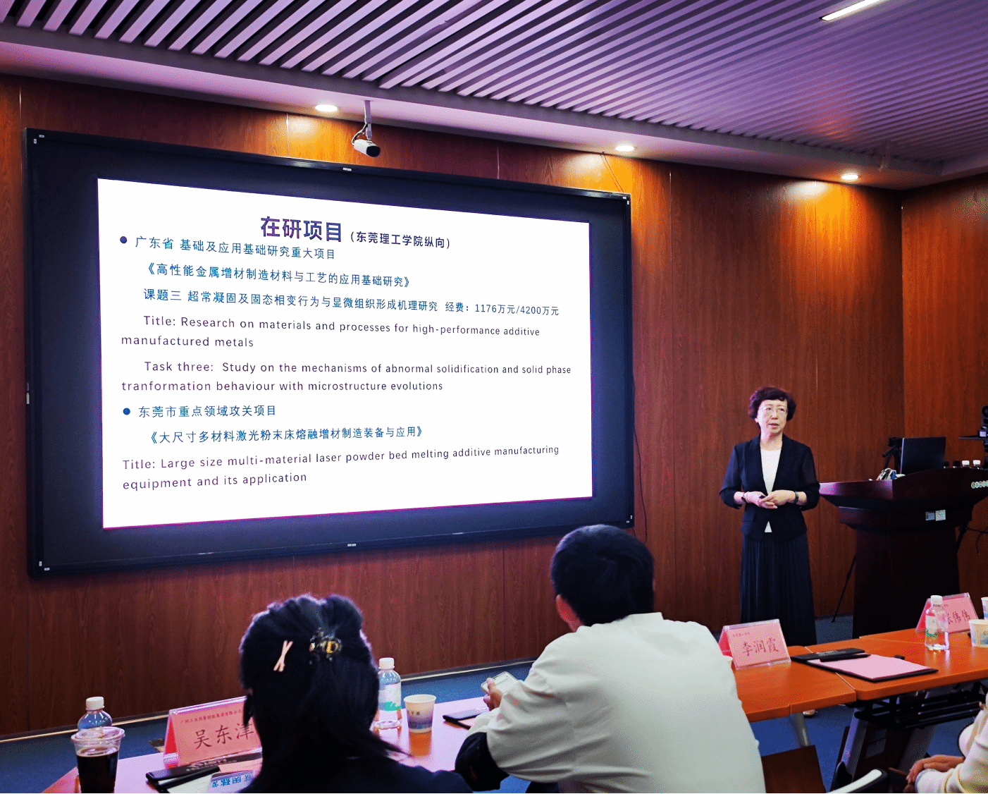 受邀出席会议的有:工信部装备中心中国增材制造产业联盟 郭丹秘书长、广州工业投资控股集团有限公司增材制造研究中心负责人 吴东津、东莞市材料基因高等物理研究院 张友昭助理研究员、深圳职业技术大学张亮博士团队成员,东莞理工学院张伟伟教授、李润霞教授、张丽娟教授团队核心成员以及东莞理工学院相关学科的研究生等四十余人。