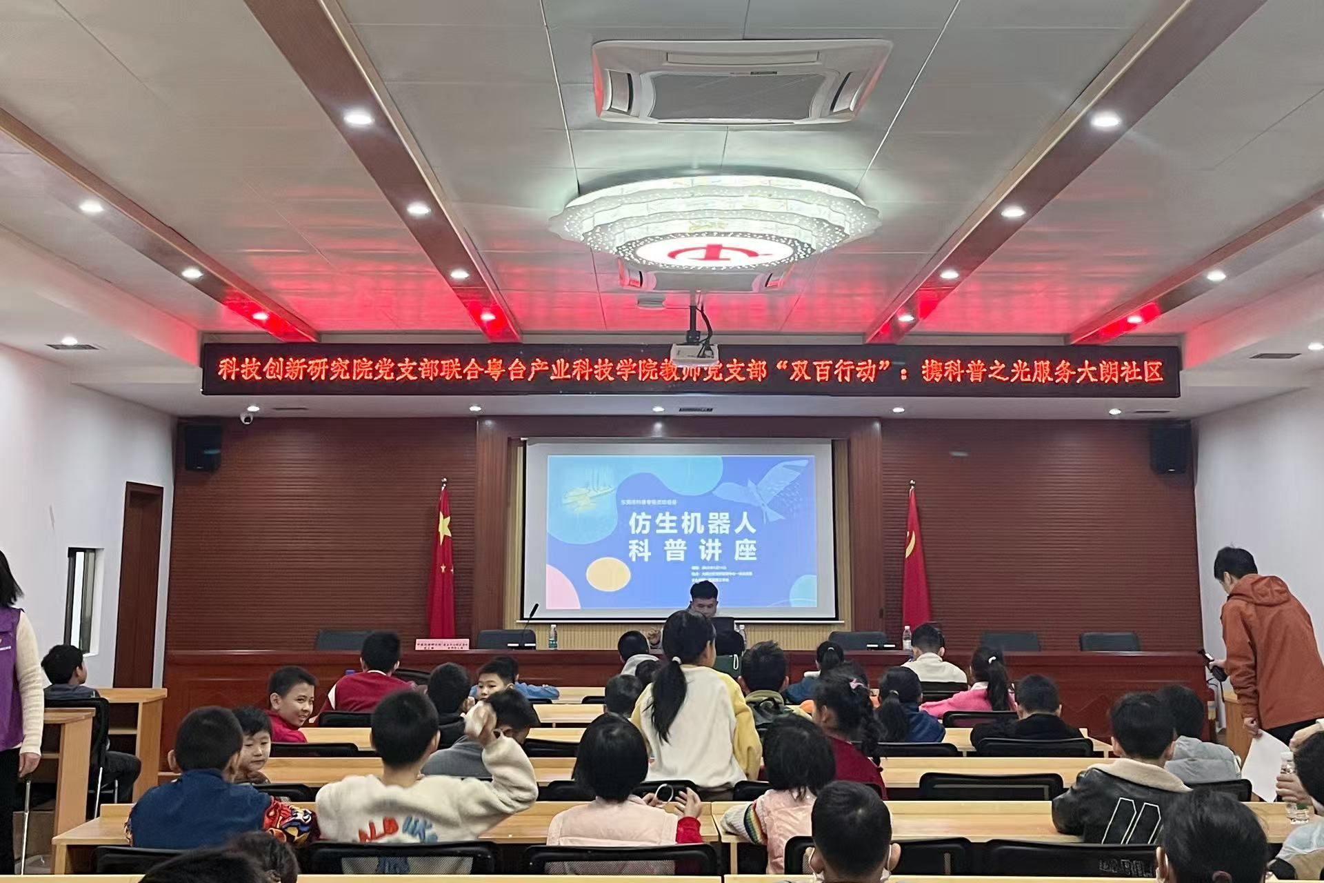 为进一步推进校地深度合作,全面落实“双百行动”结对共建工作要求,2025年1月16日下午,sunbet官网赴大朗社区举办“仿生机器人科普讲座”,携科普之光为社区教育注入新活力,推动教育帮扶工作走深走实,活动吸引了40多名社区青少年参加。
