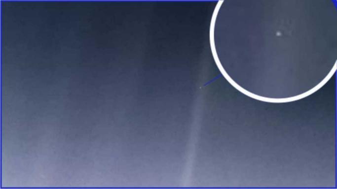 “征程”展区的最后一件展品,是“暗淡蓝点”照片。1990年2月14日,已在太空飞行13年的旅行者1号接到指令:为太阳系拍一张照片。这张照片中,地球只是那个0.12像素的蓝色光点。天文学家和科普作家萨根感叹:我们所知道的人类的一切,都在这么一个不起眼的小点上,它“仅仅是一粒悬浮在阳光中的微尘”。
