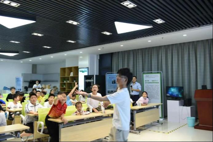 以飞行的简单动力学为出发点,宋博士向孩子们解释了自然界中鸟类飞行的现象,为什么鸟要盘旋,为什么有些鸟的翅膀尖部羽毛是分开的……在对飞行的动力学进行了通俗的讲解后,孩子们对“飞机与火箭的区别”这一问题表现出强烈的兴趣,争先恐后举手回答,生动形象地表达了自己的观点,学习氛围十分活跃。