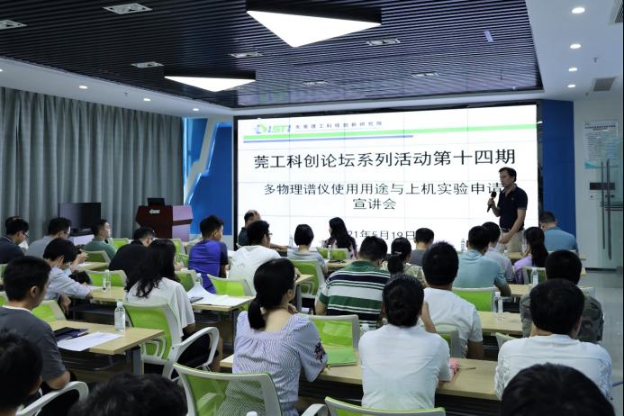 为充分利用好由我校与中国散裂中子源、香港城市大学合作共建的多物理谱仪的上机实验机时,提升上机实验申请需求的质量,2021年5月19日,科技创新研究院在松山湖国际创新创业社区D2栋学术交流厅举办了第十四期“莞工科创论坛”系列活动暨多物理谱仪使用用途与上机实验申请宣讲会,活动邀请了中科院高能物理所中子科学中心副主任殷雯研究员作为主讲嘉宾,吸引了校内多个机构的70余位科研人员参加,科技创新研究院院长周梓荣主持了本次活动。
