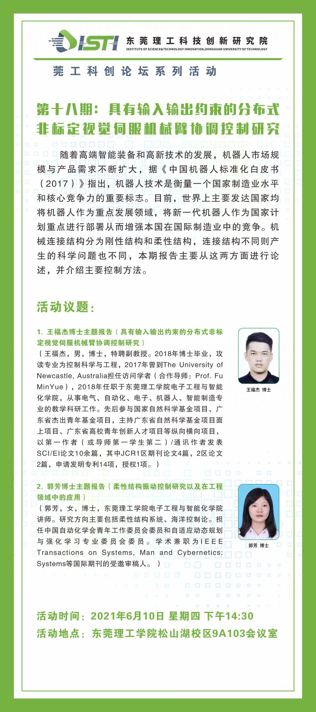 学术活动预告|东莞理工科技创新研究院“莞工科创论坛”系列活动第十八期