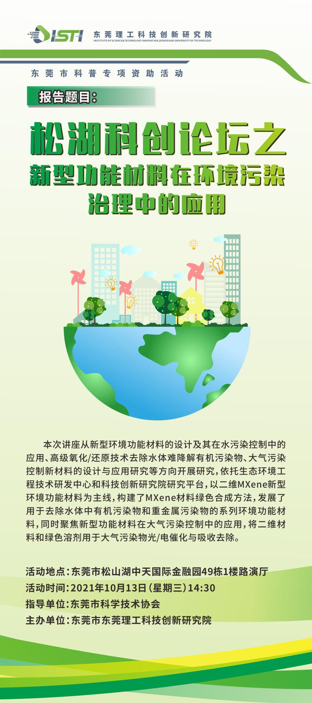 科普活动│松湖科创论坛之“新型功能材料在环境污染治理中的...