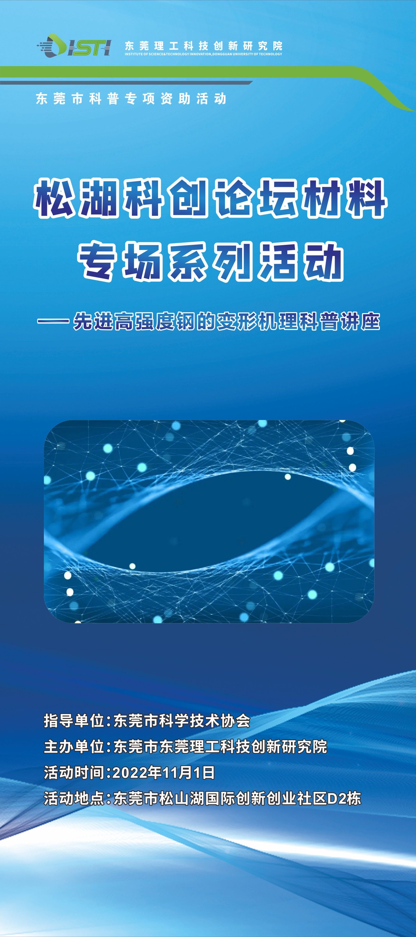 科普活动预告|松湖科创论坛材料专场系列活动之“先进高强度钢的变形机理科普讲座”