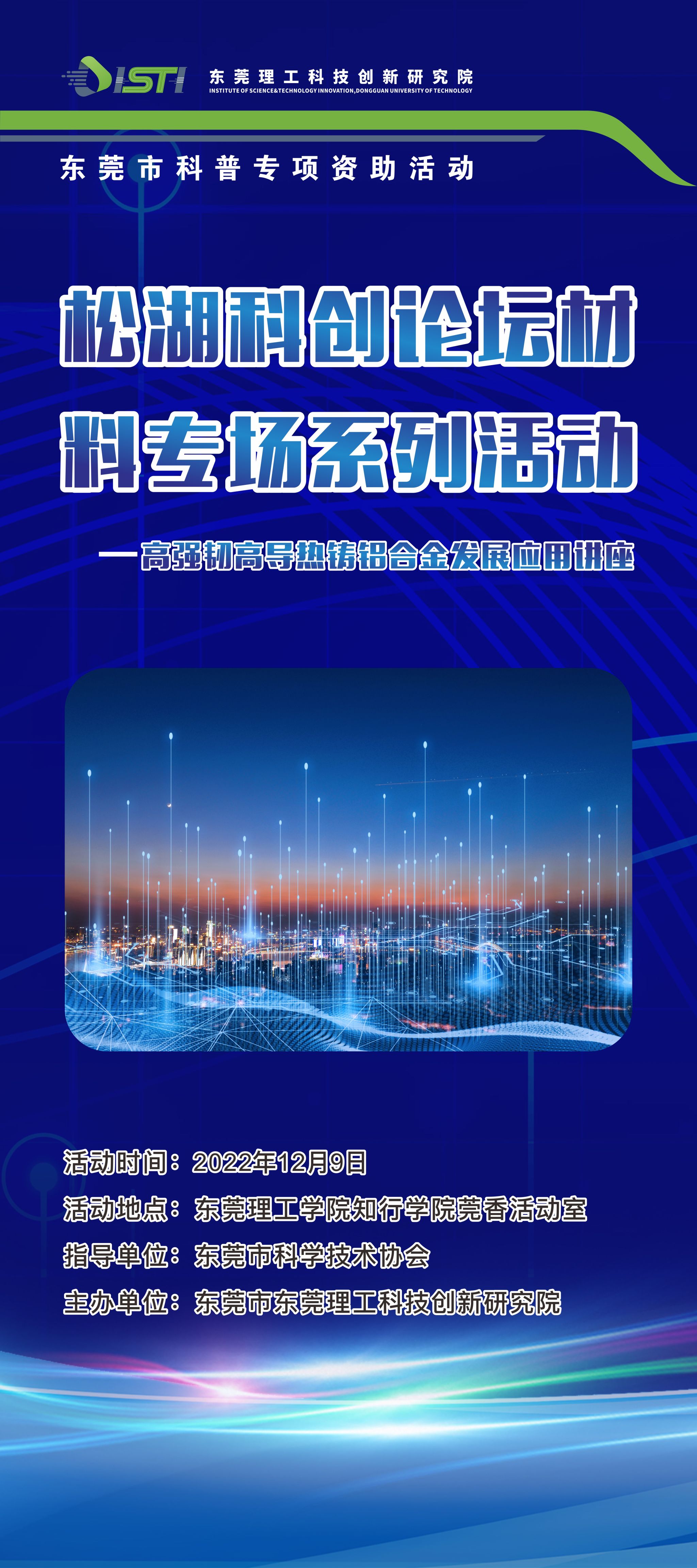 科普预告|松湖科创论坛材料专场系列活动—高强韧高导热铸铝合金发展应用讲座