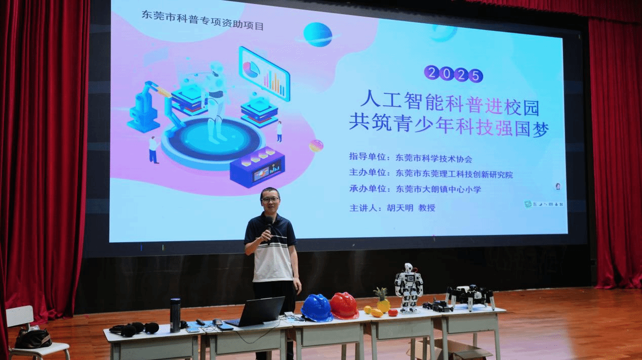 2025年4月18日下午,“人工智能科普进校园,共筑青少年科技强国梦”系列科普活动之:“人形机器人的编程实践”活动在东莞市大朗镇中心小学举行。