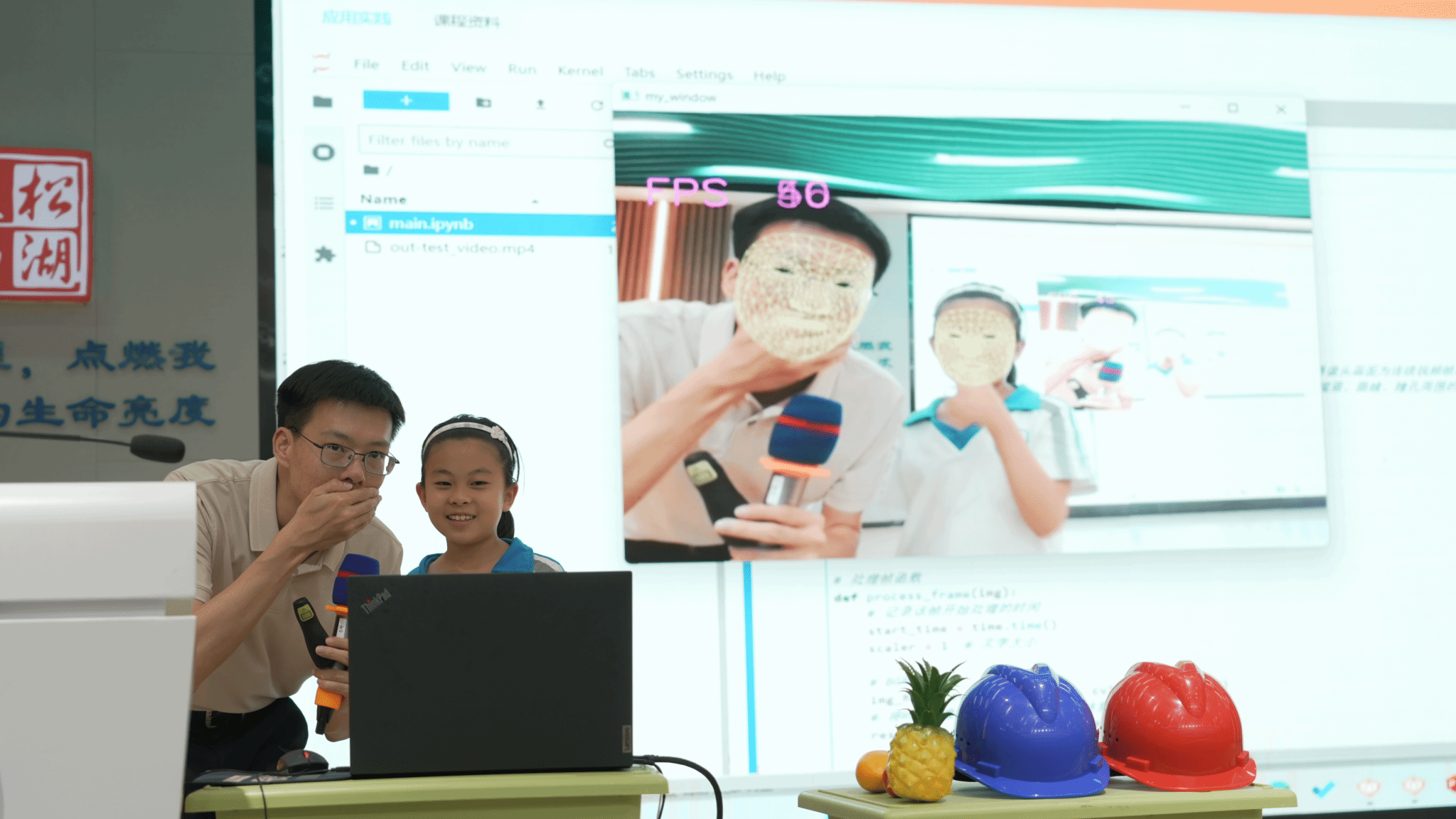 最引人注目的当属 AI 体感交互体验。同学们好奇地站在高清摄像头前,随着肢体的舒展摆动,一场科技与人体的奇妙对话就此展开。计算机搭载的先进人工智能算法即刻启动,如同拥有了 “火眼金睛”,迅速捕捉并解析人体动态:精准定位手部关节点,从指尖弯曲的弧度到手腕翻转的角度,连最细微的动作变化都被实时捕捉;同时对肩部、肘部、膝盖等 关键肢体关节进行建模,构建出动态立体的人体骨架;智能人脸识别系统还能锁定面部特征点,分析定位出人脸的不同区域。这些抽象的人体数据经算法处理后,以可视化形式呈现在大屏幕上:关节点化作闪烁的光点,肢体关节连接成动态线条,人脸特征转化为可量化的参数图谱。同学们兴奋地发现,自己随意摆出的舞蹈姿势,瞬间变成科技感十足的光影动画;做个鬼脸,屏幕里对应的参数图谱便跟着 “活跃” 起来。惊叹声与欢笑声此起彼伏,大家沉浸在 “数据重塑自我” 的神奇体验中,真切感受到人工智能在人体动作捕捉与分析领域的强大能力。