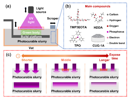 图1 光固化打印原理与材料配置方案
