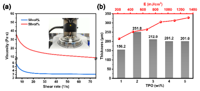 图2 浆料的流变特性与固化深度