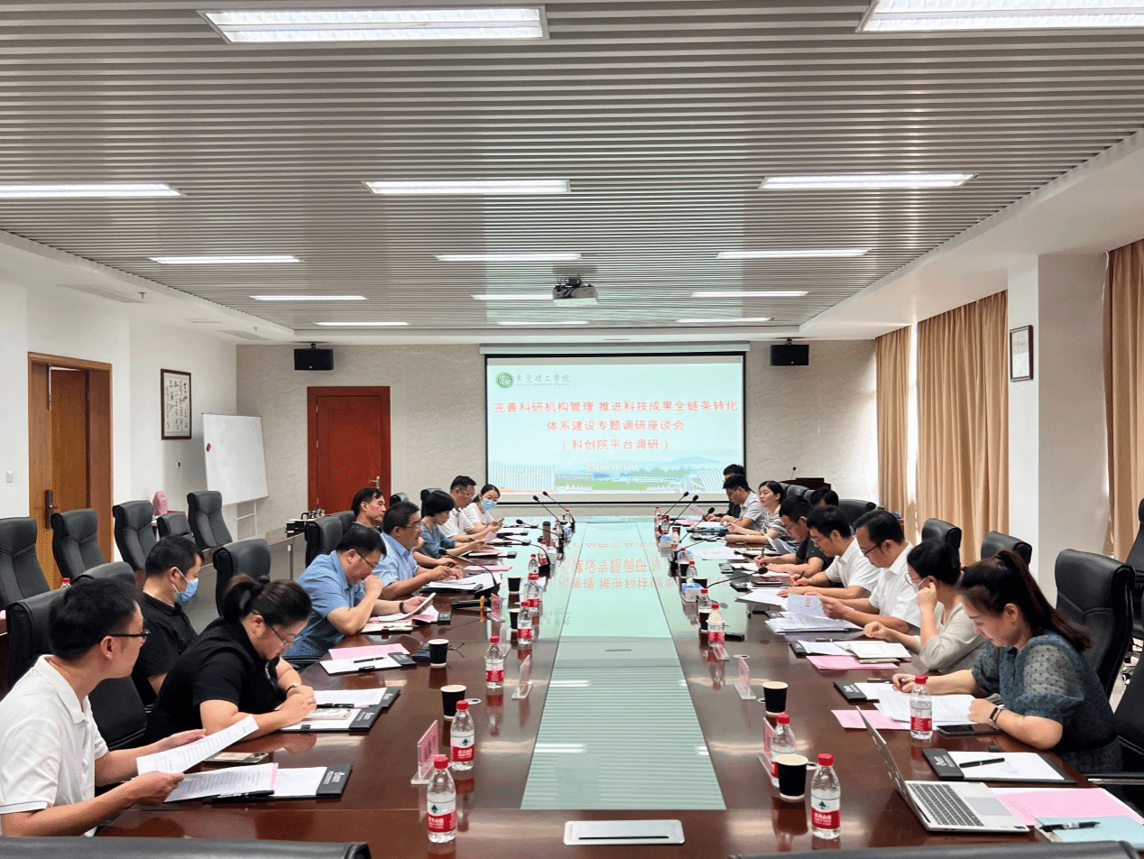 徐勇军以“完善科研机构管理 推进科技成果全链转化体系建设专题调研”为主题,以“深入基层、解决难题、推进工作、促进发展”为原则,紧扣主题教育要求,认真听取各科研平台代表的问题和需求,并进行深入交流。