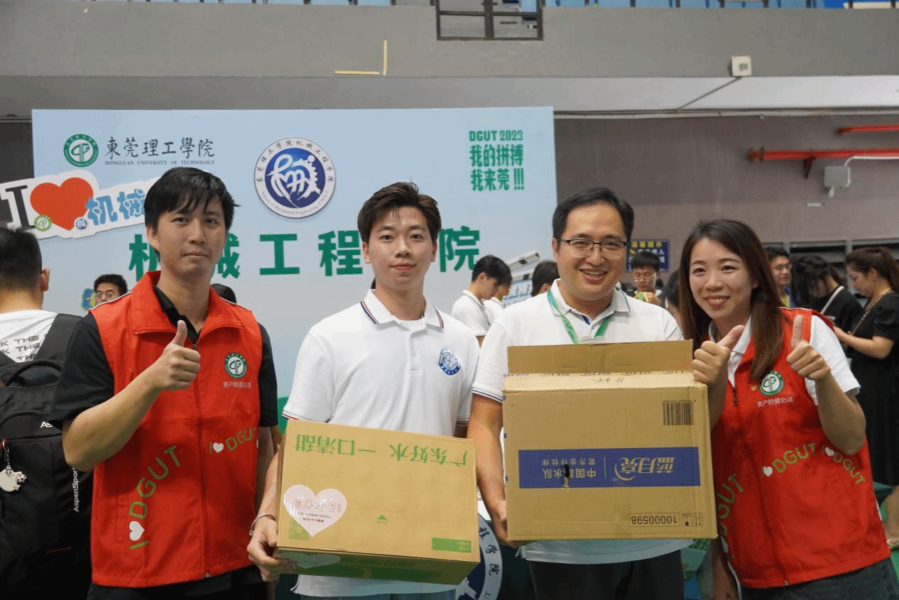 迎新当天,由资产公司党支部和科创院党支部党员、群众组成的志愿者兵分两路,分别前往松山湖校区体育馆和莞城校区4号大厅,为各二级学院、迎新服务点送上一份独属“资产经营公司和科创院”的味道及清凉。