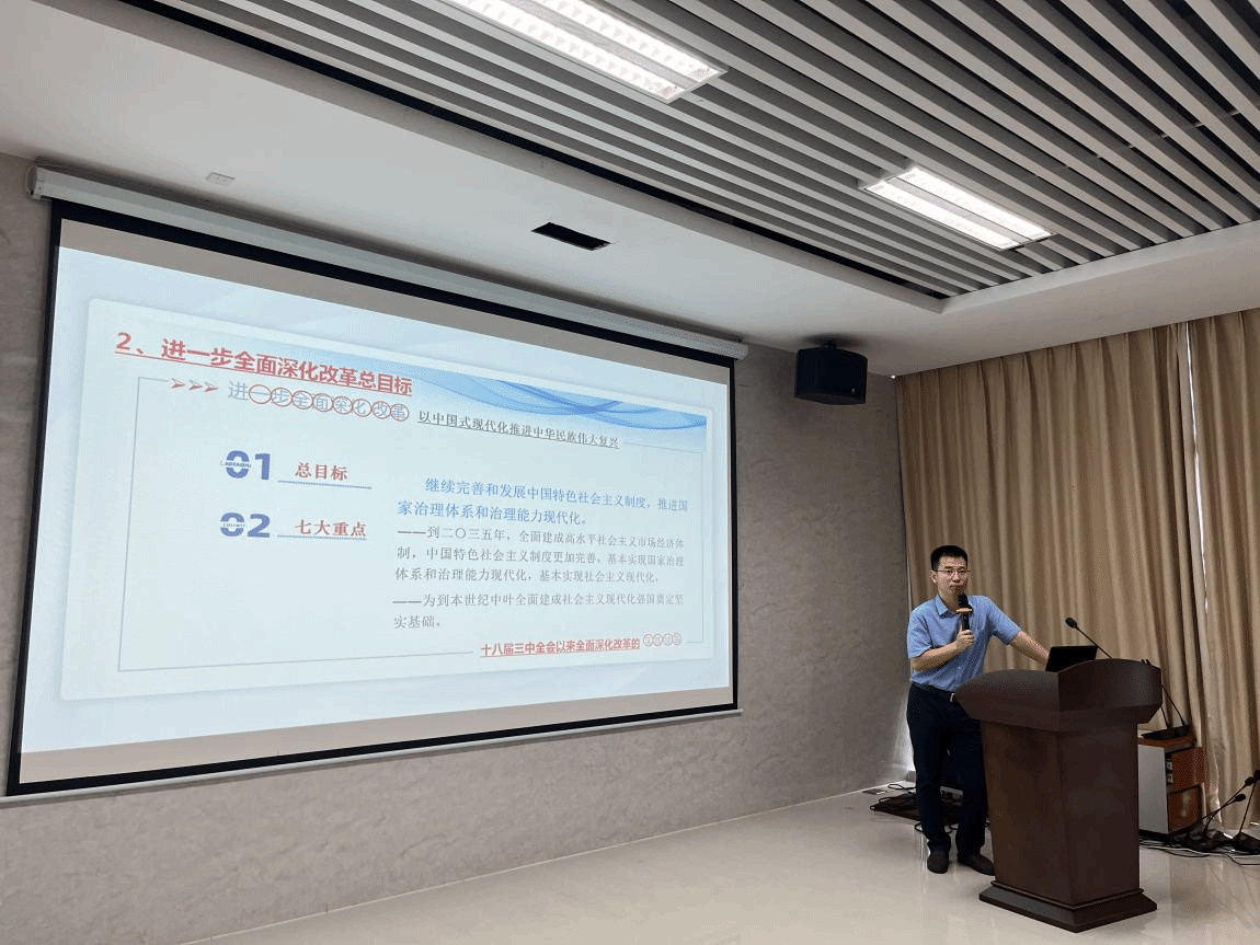9月12日下午,科技创新研究院党总支举办党的二十届三中全会精神解读专题讲座,邀请马克思主义学院双修海带来题为“以紧扣中国式现代化主题进一步全面深化改革”的报告。科创院及资产经营公司全体职工参加讲座。